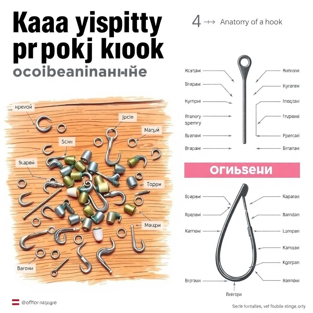 Чтобы говорить на одном языке, определим детали. Жало — острая часть, которая прокалывает губу. Поддев — нижняя дуга, на которой держится наживка. Цевьё — «ножка» крючка, прямая часть от ушка до начала изгиба. Бородка — маленький зазубренный упор, не дающий рыбе сойти. Есть ещё ушко (кольцо для лески) и изгиб, задающий форму. Условная диаграмма: