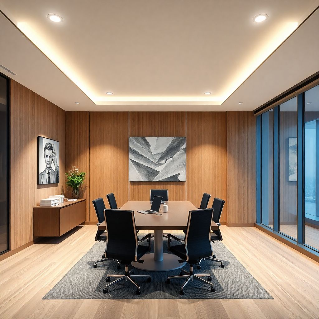 - Функциональность: подумайте о том, как будет использоваться пространство — для работы, встреч или современных переговоров.